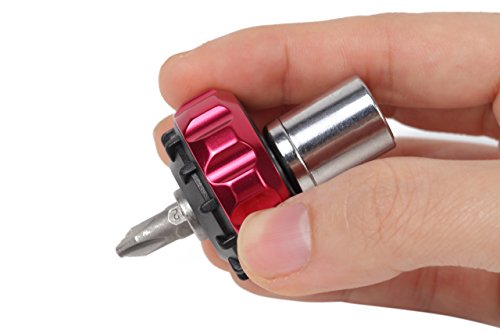 - アルミ削出しで高級感のあるラチェットスタビドライバー。全長42㎜(付属ビット装着時)で狭いところでもネジ回しが可能。(ビット無し全長 27㎜) 全長42㎜(付属ビット装着時)で狭いところでもネジ回しが可能。(ビット無し全長 27㎜)