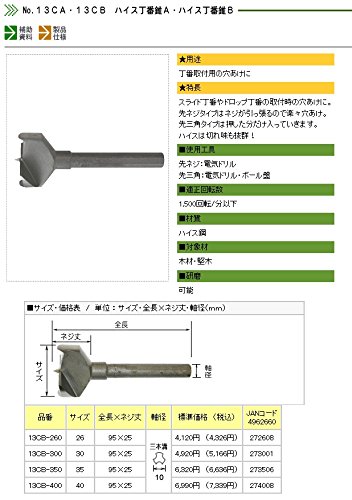 STAR-M No.13CB-260 ハイス丁番錐B(先三角) 26.0 スターエム