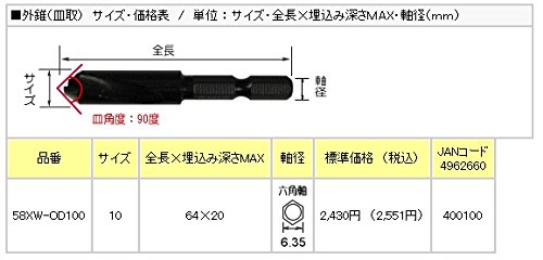 STAR-M No.58XW-OD100 ウッドデッキ用皿取錐 外錐 10 スターエム
