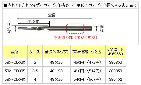 STAR-M No.58X-CD040 ハイス六角軸皿取錐 内錐(下穴錐タイプ) 4 スターエム