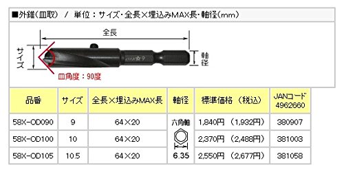 STAR-M No.58X-OD100 ハイス六角軸皿取錐 外錐 10 スターエム