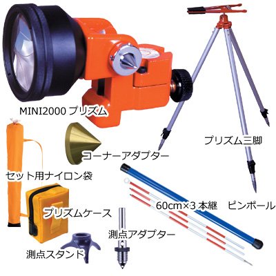 - ●プリズム三脚●専用ケース●ピンポール●プリズム用ケース●プリズム●チルトホルダー●コーナーアダプター●測点スタンド●測点アダプター