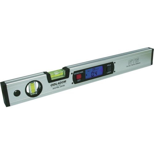 ●ODL400M●標準小売価格¥8000(税抜)●標準付属品?本体?テスト用単4乾電池×2本●測定面マグネット付対象物に本機を固定しながら、両手で対象物の角度管理が可能です。●また、測定面は凹溝構造の為パイプ上での測定も可能です。●バックライト機能付デジタル表示部はバックライト機能付で薄暗い現場でも安心して使用可能です。●反転する液晶表示本体を逆さまにしても液晶表示は逆さまになりません。●読み間違いを防ぎ、首を曲げて液晶表示を覗き込む必要はありません。●ゼロセット可能任意の角度でデジタル表示部のゼロセットが可能。●他の角度との比較が可能です。●(例)30°の位置を比較モードで基準0°にした場合、通常モードで50°の位置が20°と表示されます。●表示固定可能手が届いても、液晶画面が読み取れない時など、表示固定機能は作業効率を各段にアップさせます。●立ち上がり表示デジタル表示部には、角度表示と同時に1m先での立上がり数値を表示します。●表示液晶表示(°、mm/m)●角度表示モード通常モード、比較モード切替可能●検出角度範囲360°(4方向90°)●最小表示最...