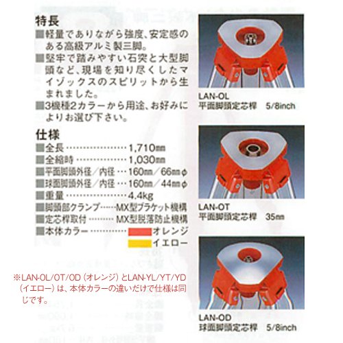 - (OD:球面タイプ/OL:平面タイプ)オートレベル、レーザーレベル等に使用