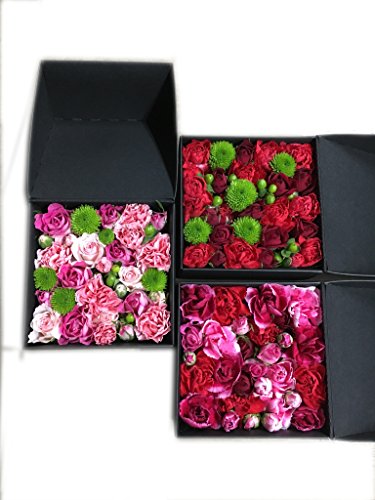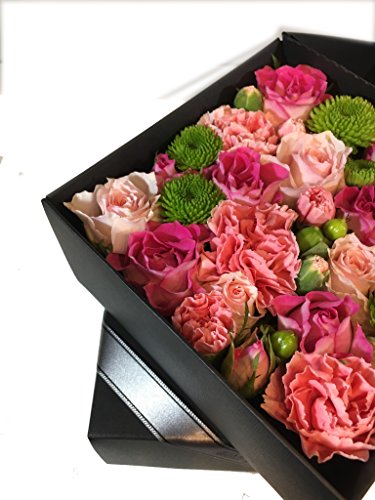 シックな黒のBOXにアレンジされた花は、色がとても綺麗に映えます。 中が見えないからこそ、サプライズのプレゼントにピッタリです。 お花をプレゼントしたいけど大きな花束を持って歩くのは恥ずかしい…そんな男性にもオススメです。 ※こちらの商品はご購入から約4日後の発送となります。※お届け希望日時がある場合、入金確認から4日後以降の日時指定にて承っております。ご希望の場合はお問い合わせ下さい。※仕入れ状況により多少、花材が変わることがありますので、ご了承ください。 ※PCの環境により、色合いが実際と違うように見える場合がございます。
