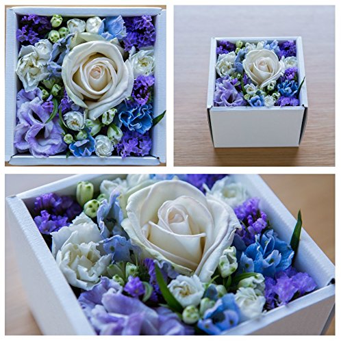 花 ギフト フラワーボックス クリスマス アレンジメント プレゼント サプライズ お祝い 誕生日 記念日 ホワイトボックス (ブルー×ホワイト)WB-BW9