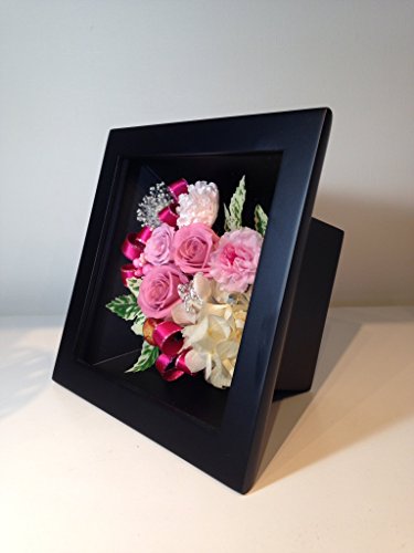 - シックな黒フレームは、中のお花の色を引き立たせ、落ち着いた空間を作り出します。置いて飾るのはもちろん、壁掛けにも出来るので、お好きな所に自由に飾って頂けます。