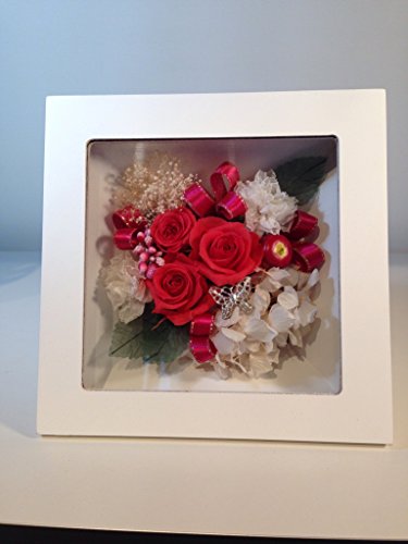 - 洗練された印象ながら重厚感のある木製フレームの奥行きを生かし、バラをメインにし立体感あるデザインに仕上げました。