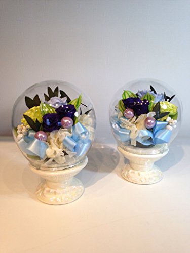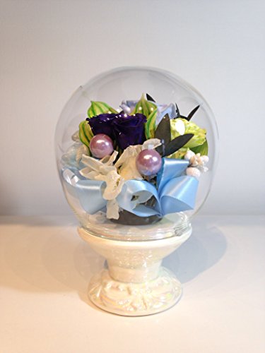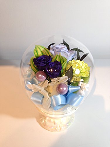 プリザーブドフラワー ガラス お祝い ギフト お仏壇 仏花 お供え『ラウンドグラスドーム(一対)サックスブルー』