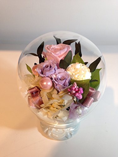 - ラウンド型のガラスドームの中に上品な色合いの花をアレンジした商品です。