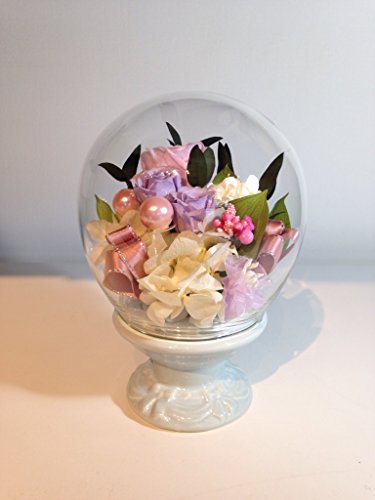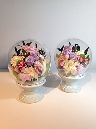 プリザーブドフラワー ガラス お祝い ギフト お仏壇 仏花 お供え『ラウンドグラスドーム(一対)パステルピンク』