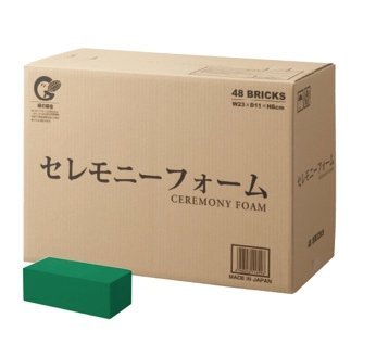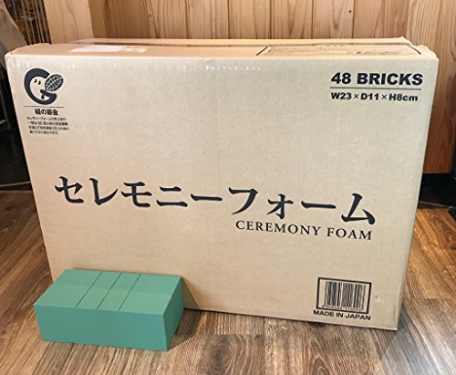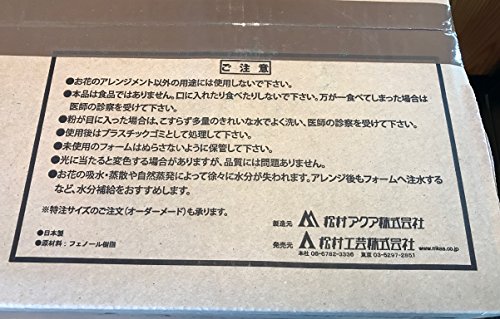 国産品(日本製)となっており、吸水・保水・保持はトップクラスです。 ◆使用方法◆ 1・フローラルフォームを花器に適した大きさにカットします。 2・大きめの器にたっぷり水をはり、フローラルフォームを浮かべて下さい。 下から徐々に吸水を始め、上部表面が完全に色が変われば終了です。(1ブリック約40~50秒) 3・フローラルフォームを花器に移し、必要であれば 防水テープ等で固定します。 フォーム角の面取りをするとアレンジしやすくなります。 4・自由自在にアレンジメントを楽しんで下さい。