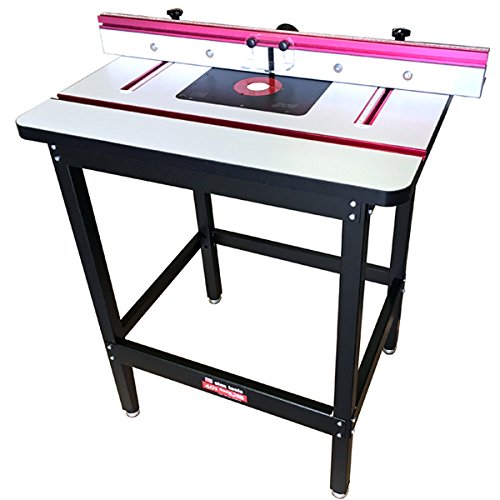 ●両面ラミネート張りのMDF製テーブルは十分な広さの長さ800mm×幅600mm。厚みは32mmありゆがみの少ない平面を確保しています。 ●ルータを取り付けるプレートは厚み10mmの樹脂製でたわみもありません。10か所の高さ調整ビスがありテーブルとの高さ調整が可能です。センタープレートはマグネットで固定しており脱着も簡単です。INCRAやJessEmと同じプレートサイズでルーターリフターの使用が可能です。 ●MDF製ルーターフェンスは2分割されており、ビットの大きさ、作業内容によりそれぞれ左右に動かす事が出来ます。 ●フェンス寸法は長さ913mm(最狭時)×高さ90mm。T型トラックが装備されており別売のフェザーボードなどの取り付けが可能です。内径63.5mmダクトホースを接続し集じん機で切削屑を集塵する事が可能です。 ●左右のフェンスレールは可動範囲が大きく(380mm)、スケールは任意の位置に設定する事が出来ますので切削した位置から正確にフェンス移動量を決める事が出来ます。 ●MDF製ルーターフェンスは2分割されており、ビットの大きさ、作業内容によりそれぞれ左右に動かすが出来ます。ビットガードが標準付属。 ●前モデルよりもしっかりとした作りとなったスタンドはスタンドの高さを変える事の出来るアジャスター機能が装備されており、安定して作業をする事が出来ます。 ●米国標準の3/4”マイタートラックが装備されていますので別売のフェザーボードやマイターゲージを利用する事が可能です。