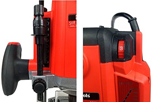 ●握りやすいエルゴノミックデザイン・グリップ ●手元で電源ON-OFF ●スライドマルノコにも採用リニアボールベアリングでスムーズ昇降 ●深さ微調整機構 (深さ指示目盛付)0.1mm単位で微調整できます。 ●スピード調整ダイヤルを回すことにより、回転数が自由に変えられます。 ●LEDライト【残照機能付】影ができにくい2灯式。薄暗い現場作業に便利です。 ●テンプレットガイド工具レス・着脱ロックプレートを引くだけでワンタッチ着脱できます。