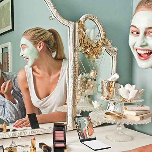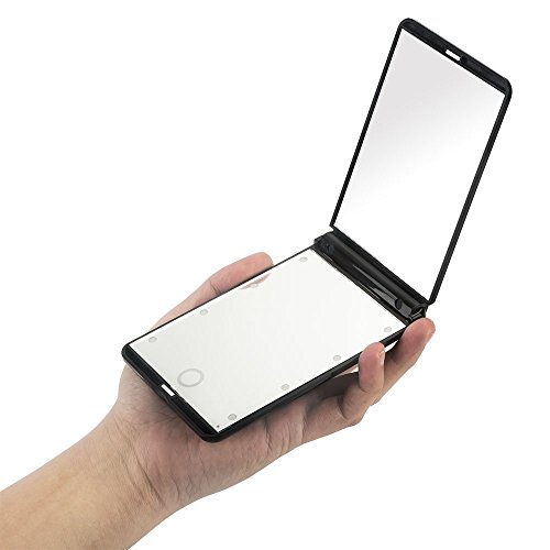 - 拡大鏡と通常鏡がセットになってる両面鏡。開けると等倍の鏡で、顔と髪がはっきりと見え、もう一方は2倍拡大で、細かい部分を見ることができ、メイクをするのにより適しています。