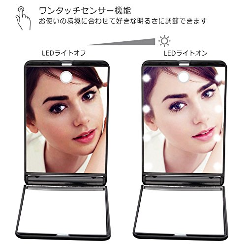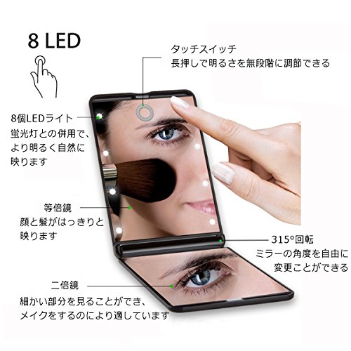 SUCOOL 化粧鏡 LEDミラー 女優ミラー 調光型二面鏡 スタンドミラー 拡大鏡付き コンパクトミラー LEDライト8個 明るさ調節可能