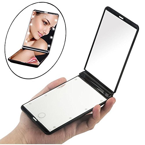 - コンパクトサイズで、軽量で持ち運び便利。自宅でも、外出先でも美しく!バックにすっぽり入って暗い所でも手軽にメイクチェックできるLED付きミラーです。