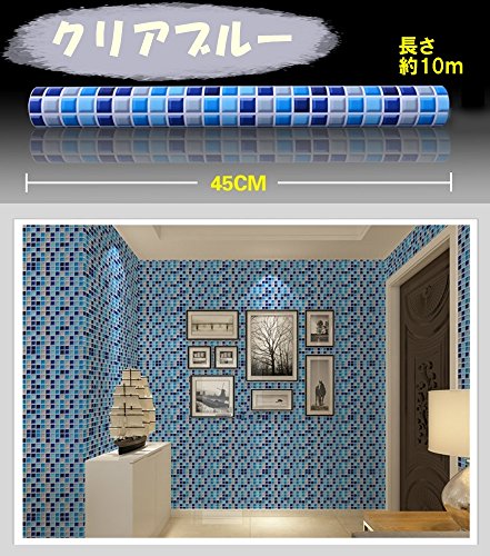3world DIY タイル調 防水 壁紙 シール 45cmx10m SW921クリアブルー