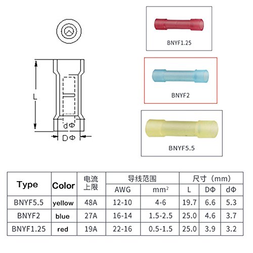 SuYEp bnyf2 16 – 14 AWG 27 A絶縁突合せコネクター電気ワイヤターミナル ブルー