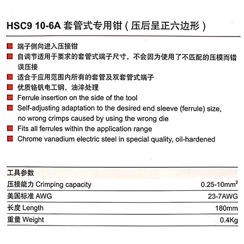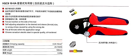 - クリンパープライヤーHSC9 10-6A 0.25-10mm²に使用される自己調整式圧着工具ケーブルエンドスリーブケーブルエンドスリーブ。