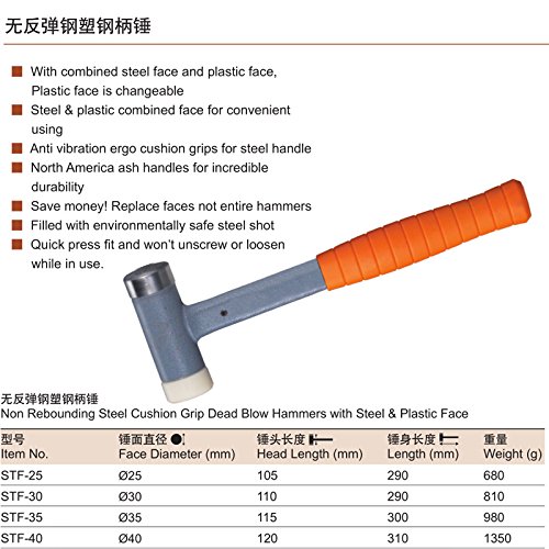 Suyep非反発スチールクッショングリップデッドブローハンマースチール&プラスティックフェイス (STF-25)