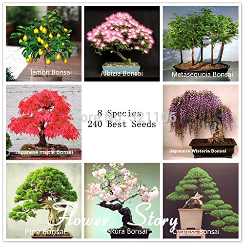 Bonsai Package 8 Packs Bonsai Tree Seeds Pine Maple Bonsai Seeds DIY Home Garden Combined Green Plants