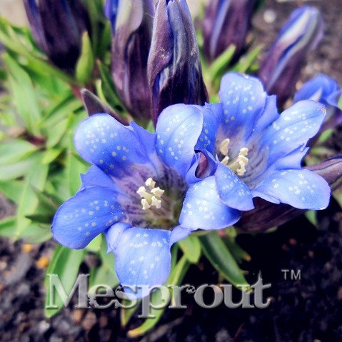 100PCS新しい家の庭の植物茎のないリンドウの花ハーブの種、多年生ハーブ大葉リンドウ種子