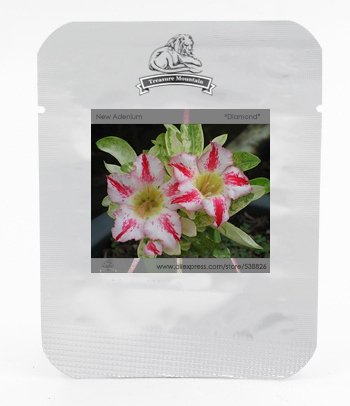 ニューリリース 'ダイヤモンド'ライトピンクダブルの花レッドストライプアデニウムObesum種子、プロフェッショナルパック、2種子/パック、デザートローズ