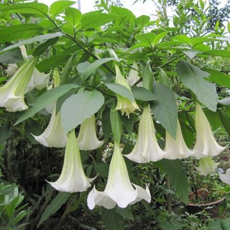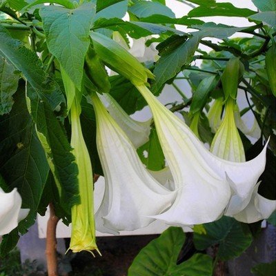 200個/ロット - ホワイトチョウセンアサガオの花の種は、家庭菜園用のブルグマンシアsuaveolensフラメンコ天使のトランペット盆栽種子をDWARF