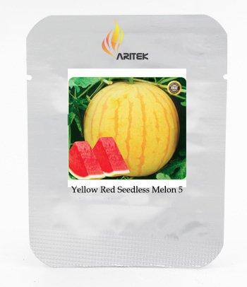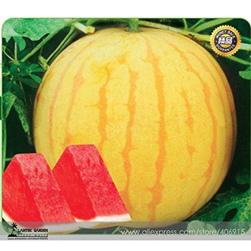 Heirloom 'Huang Pi Qiu' Yellow Skin Red Seedless Watermelon Seeds, Professional Pack, 5 Seeds, 13% Sugar Sweet Juicy E3412