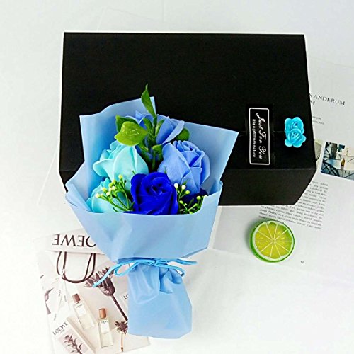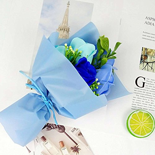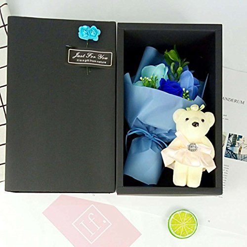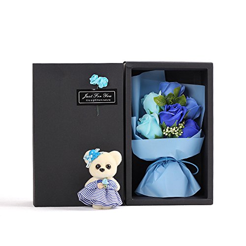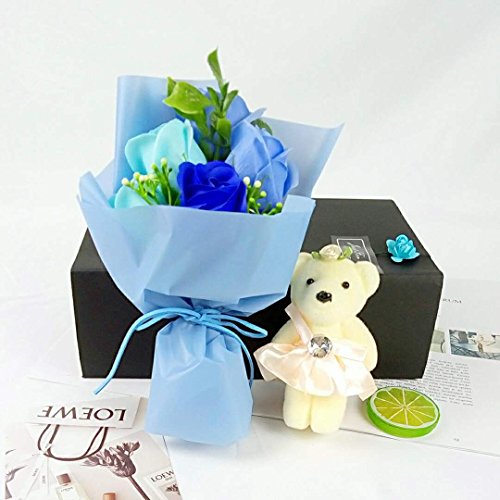 MINENA ソープフラワー 石鹸 花 バラ 花束 可愛い熊付き 香り付き ギフト プレゼント 母の日 誕生日 女性(ブルー)