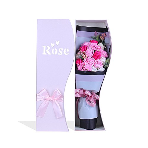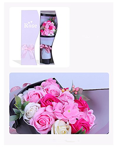 MINENA ソープフラワー 石鹸 花 バラ 花束 香り付き R型ボックス付き ギフト プレゼント 女性 母の日 誕生日 結婚祝い 結婚記念日 (ピンク )