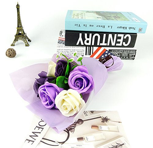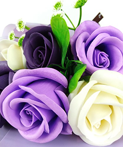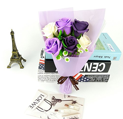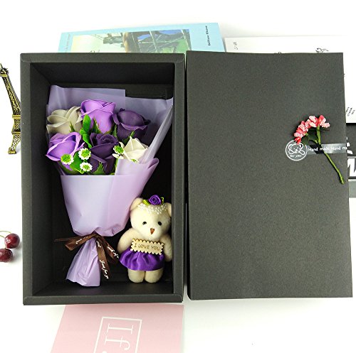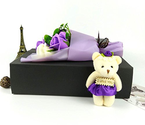 MINENA ソープフラワー 石鹸 花 バラ 花束 可愛い熊付き 香り付き ギフト プレゼント 父の日 誕生日 女性 (パープル2)