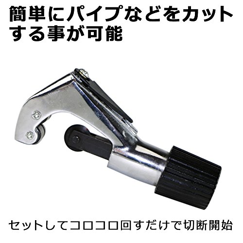 簡単にパイプなどの筒状の物をカットする事が可能! セットして、コロコロ回すだけで切断開始! サイズも小さいのでかさばらない! 切断できるサイズは3ミリ~28ミリまで! ■商品概要■ 【商品名】簡単パイプカッター 【サイズ】約12.8×5.4×3.1センチ 【パッケージサイズ】約18×9×3.4センチ 【重量】約265グラム 【素材】高炭素鋼 【切断可能範囲】3~28ミリ ※簡易梱包での発送となります。あらかじめご了承くださいませ。 ※商品の仕様は多少変更となる場合がございます。あらかじめご了承くださいませ。 ※パソコンのモニター設定により、写真と実際の商品は色合いが異なる場合があります。 予めご了承下さい。