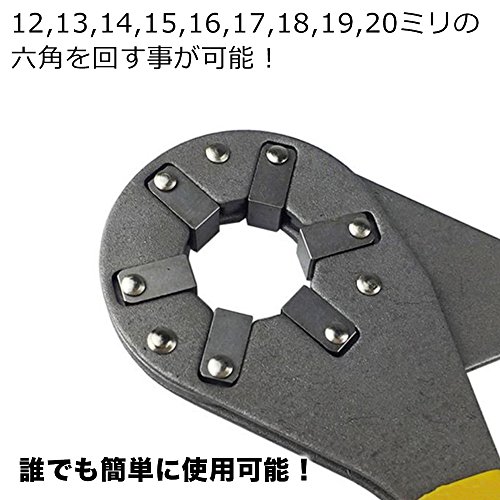 ●12,13,14,15,16,17,18,19,20ミリの六角を回す事が可能! ●これ1本あれば便利! ●様々な物の修理に適しています! ●誰でも簡単に使用可能! ■商品概要■ 【商品名】8インチ六角万能レンチ 【サイズ】約19×10センチ 【素材】45#鋼 ※簡易梱包での発送となります。あらかじめご了承くださいませ。 ※商品の仕様は多少変更となる場合がございます。あらかじめご了承くださいませ。 ※パソコンのモニター設定により、写真と実際の商品は色合いが異なる場合があります。予めご了承下さい。