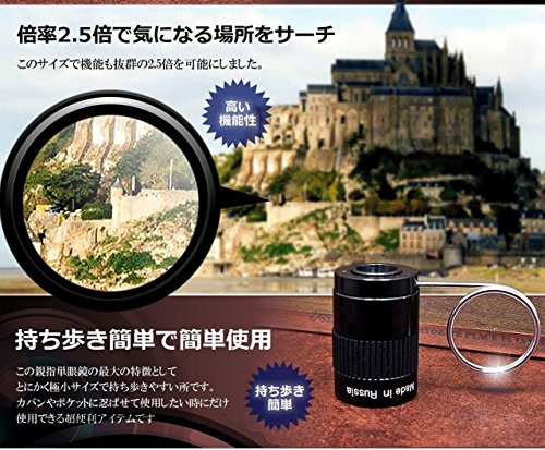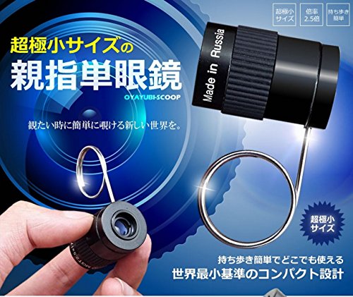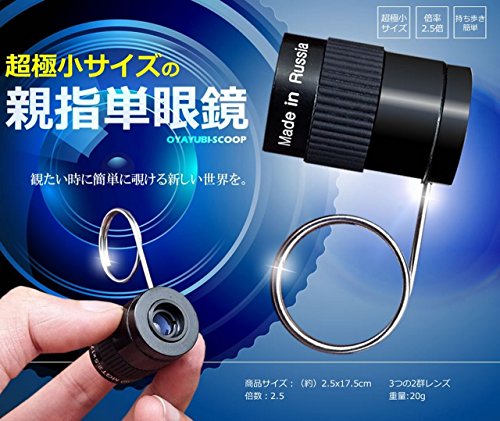【小ささを求めているならこれ!!!】 親指サイズ 2.5倍率 単眼鏡 極小 コンパクト 持ち運び ラクラク 【指フック 付き】
