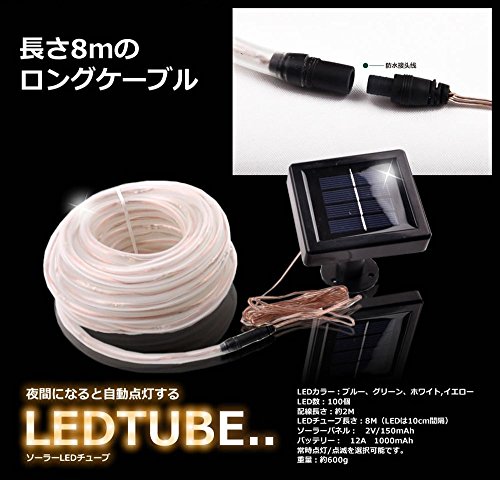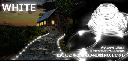 ソーラーLEDチューブ 夜間になると自動点灯する LED100個搭載で 長さ10mの ロングケーブル エクステリア 防犯 SY-L-CHU ホワイト