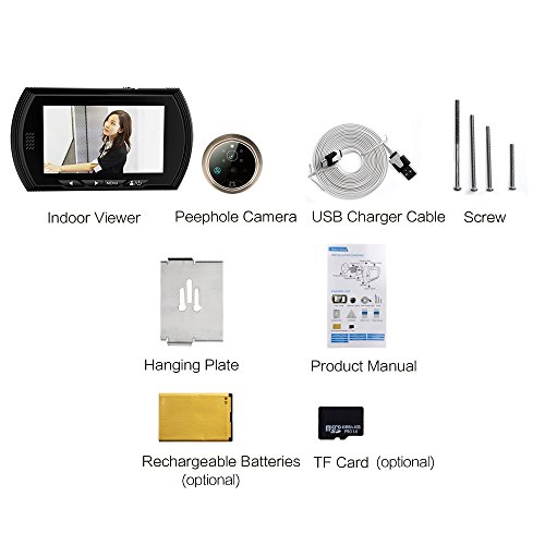 パッケージ内容: 1 xドアビューア、1つの穴あきカメラ、1 x充電ケーブル、4 xネジ、1 xハンギングプレート、1 xバッテリー、1 x TFカード、1 x英語ユーザーマニュアル