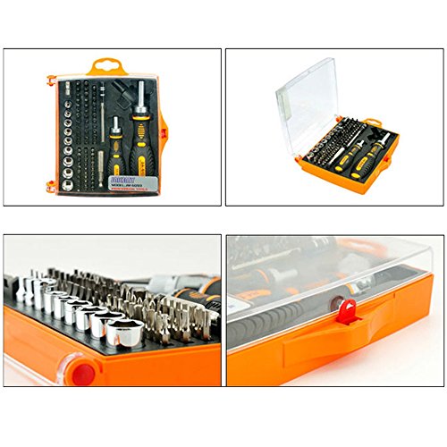 パッケージ内容: 2 xドライバーハンドル、65 xビット、9 xソケット、1 xエクステンションバー、1 xコネクタ、1 xソケットエクステンションロッド、1 xツールボックス