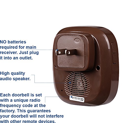SadoTechモデルCXR Wireless Doorbell with 1ボタンリモートand 2プラグイン受信機オペレーティングat over 500-feet範囲with over 50チャイム、電池不要の受信機、固定コードCシリーズ ST-CXR-BR