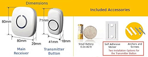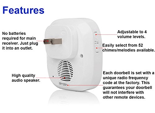 - 50以上の異なる着信音を使うことができます。500以上の足の動作範囲(オープンエリアに1000 m)は付属していません。4レベルのボリューム調整可能25db~110dbです。