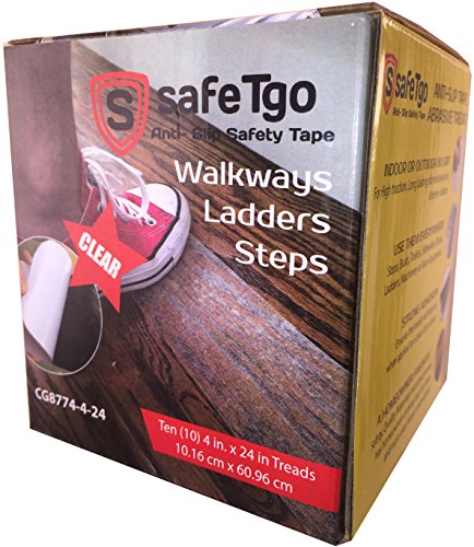 safetgo 10強力な粘着力研磨剤Treads – 4で。By 24 in 4 " x 24 "滑り止め安全Grit High Traction noスリップ防止テープ安全グリップ( 4インチby 24インチ)階段のボート手順Marineラダー 4 inch By 24 inch クリア CG8774-4-24-T
