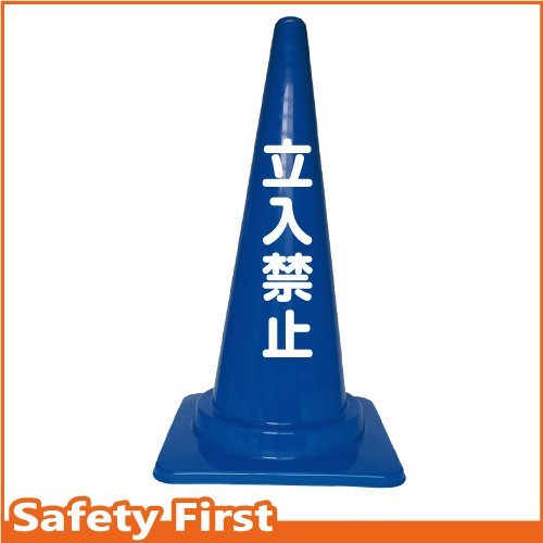 Safety First 立入禁止 文字入りカラーコーン 青 (片面)
