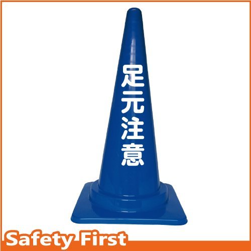 Safety First 足元注意 文字入りカラーコーン 青 (片面)