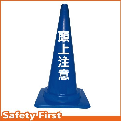 Safety First 頭上注意 文字入りカラーコーン 青 (片面)