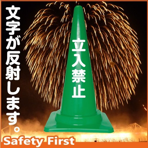 Safety First 立入禁止 文字入りカラーコーン 緑 反射文字(片面)