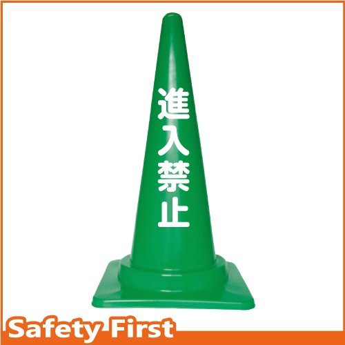 Safety First 進入禁止 文字入りカラーコーン 緑 (片面)