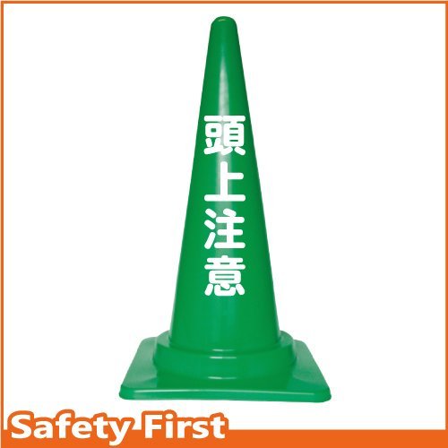 Safety First 頭上注意 文字入りカラーコーン 緑 (片面)