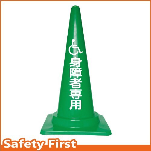 Safety First 身障者専用 文字入りカラーコーン 緑 (片面)