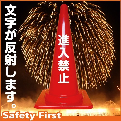 Safety First 進入禁止 文字入りカラーコーン 赤 反射文字(片面)
